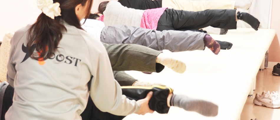 | 内容 | 一人一人の症状にあわせた徒手療法、運動療法を少人数制の グループで1時間30分のメニューを行ないます。 送迎を希望される方はご自宅までお迎えに上がります。 | セラピストがご自宅に訪問し徒手治療を30分行ないます。 |